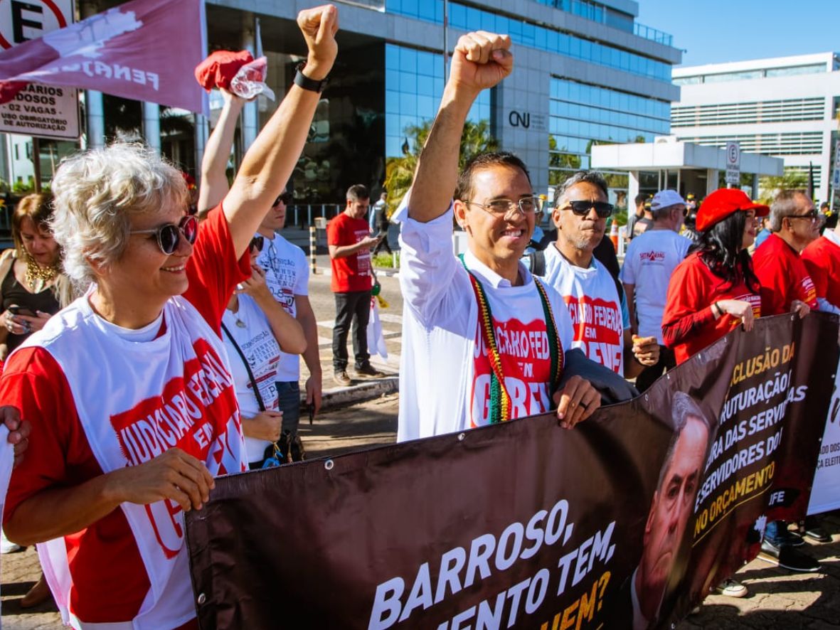 Já no dia 8/8, teve caravana do Sindjufe à capital do país, onde vários(as) colegas de outras representações sindicais participaram dos atos em frente ao CNJ e ao STF