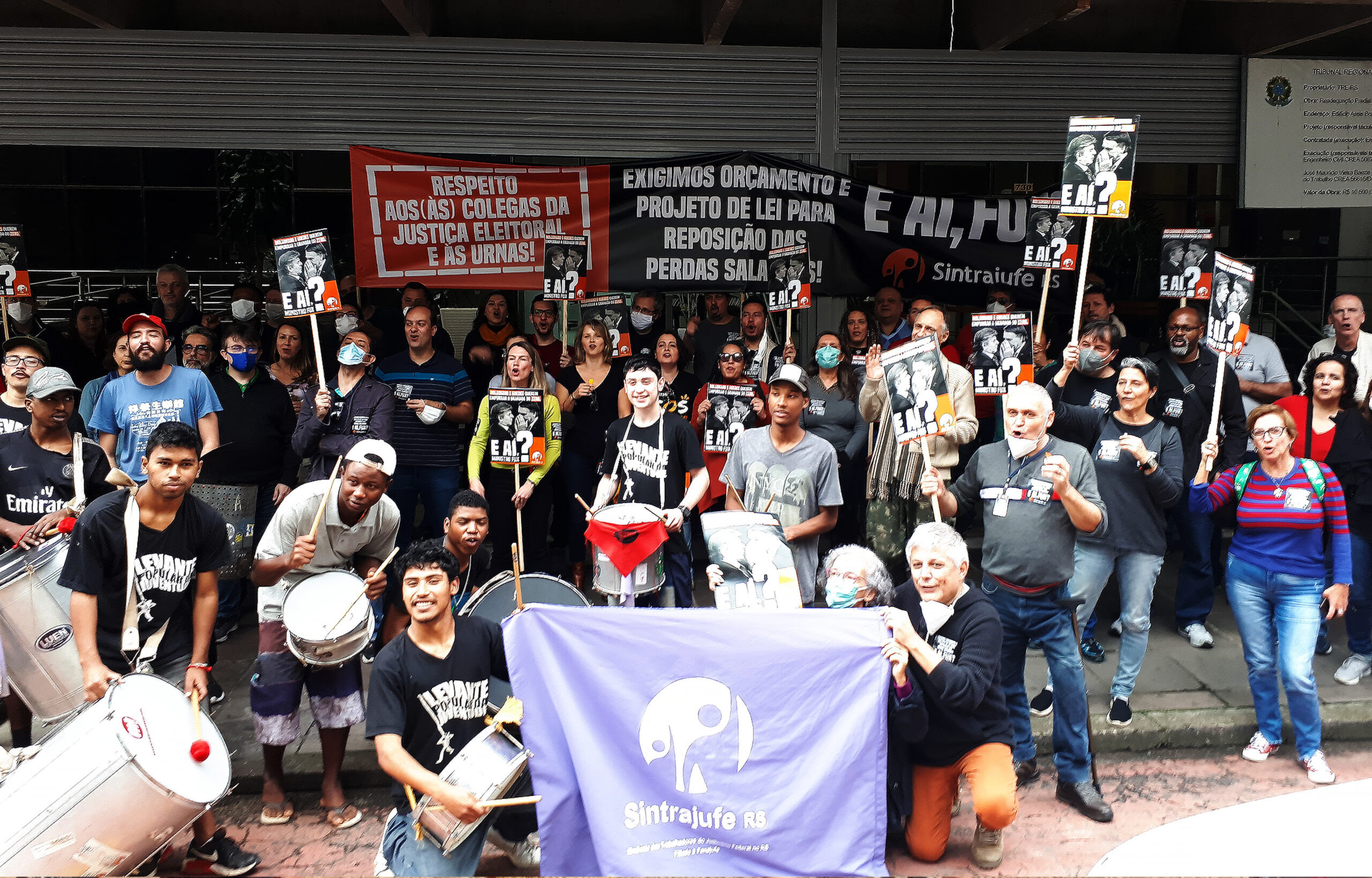 O ato contou com a animada batucada do Levante Popular da Juventude, que também foi levar seu apoio à atividade. Nas manifestações da direção e de colegas da base da categoria, estavam presentes a cobrança ao ministro Luiz Fux, a indignação contra o reajuste zero de Bolsonaro e a defesa do trabalho idôneo dos servidores e das servidoras da Justiça Eleitoral.