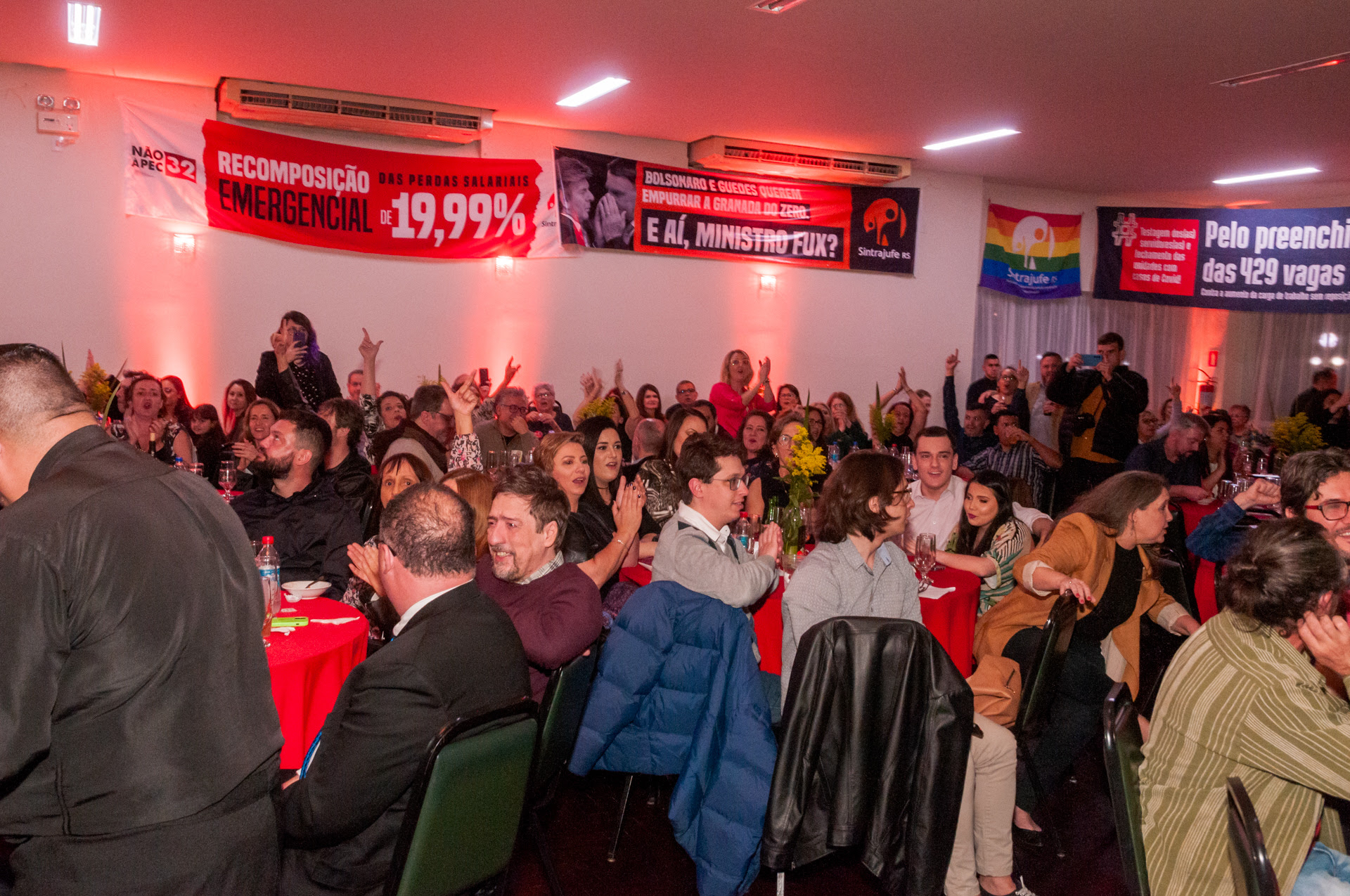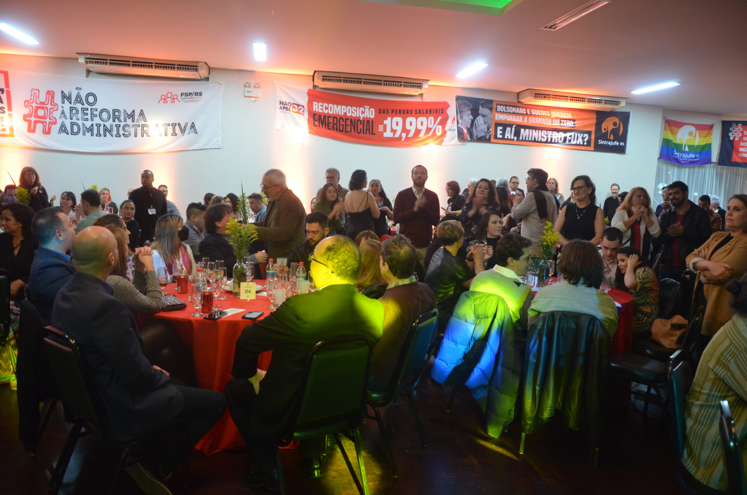 A nova Direção Colegiada assinou a ata de posse dia 1º de setembro, mas antes disso já havia divulgado o convite para a categoria participar da festa de confraternização. Cerca de 400 pessoas estavam presentes no salão de festas do Grêmio Náutico Gaúcho, que foi decorado com faixas das principais mobilizações realizadas pelo Sintrajufe/RS nos últimos três anos.