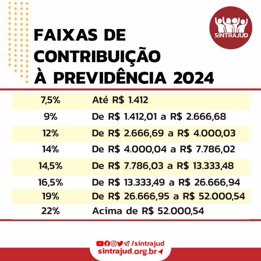 Portaria que reajusta em 3,71% os benefícios pagos pela Previdência e as faixas de contribuição previdenciária para o regime geral e para o regime próprio (RPPS) foi publicada pelo governo na quinta-feira, 11 de janeiro. A atualização das faixas de contribuição previdenciária altera o desconto de todos os servidores ativos, e também dos aposentados cujos benefícios não sejam limitados ao teto do INSS, que contribuem sobre o que excede esse valor.