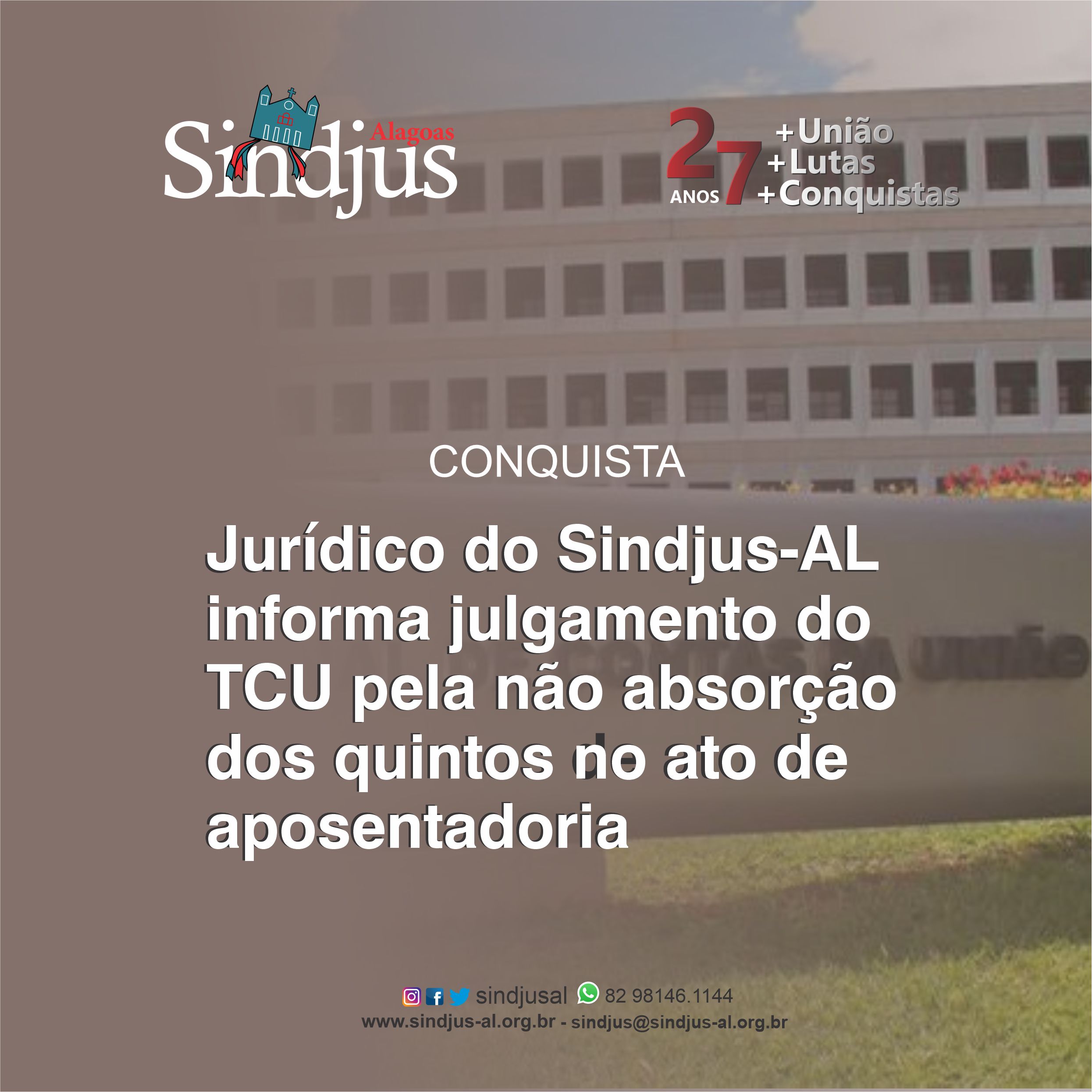 O advogado do Sindjus-AL Clênio Pachêco Franco Junior, do escritório Clênio Pachêco Franco Advogados e Consultores Jurídicos, interpôs pedido de reexame, Acórdão 1.643/2021-TCU-2ª Câmara, pela manutenção da incorporação dos quintos, com amparo da decisão judicial transitada em julgado, movido pelo Sindjus-AL em favor de todos os sindicalizados, que assegurou o direito.