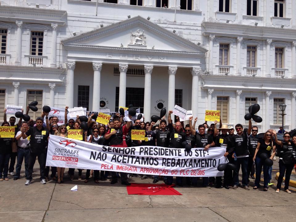 Os servidores em greve na Justiça Federal do Maranhão concentraram-se na manhã desta segunda-feira, 22, nas dependências da Seção Judiciária do Maranhão, de onde saíram para receber e cobrar o presidente do Supremo Tribunal Federal, que cumpre agenda no Estado, para que a posição do STF seja mais incisiva ao lado do projeto que reajusta os vencimentos da categoria, previsto para votação no Plenário do Senado no próximo dia 30, após o governo manobrar e retirar da pauta no último dia 10. Na última sexta-feira, era esperado, conforme divulgado, que o Executivo enviasse ao menos uma proposta de negociação ao Supremo, o que não foi feito, frustrando os servidores.