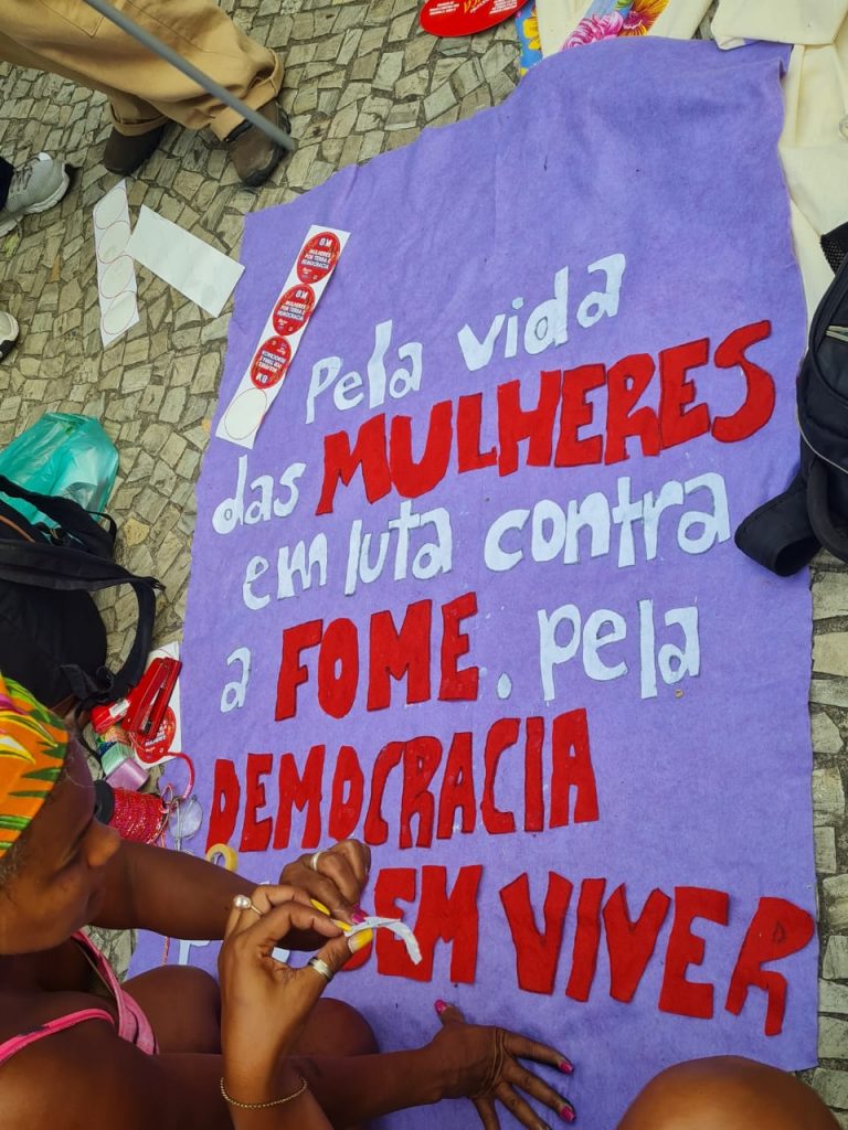 Nesta quarta-feira, 8 de março, as mulheres tomaram as ruas do Centro do Rio e marcharam da Candelária até a Cinelândia, para pedir respeito à democracia, igualdade, o fim do feminicídio e de outras formas de violência contra mulher, o fim da fome, educação, saúde e oportunidade de emprego na cidade e no campo.
