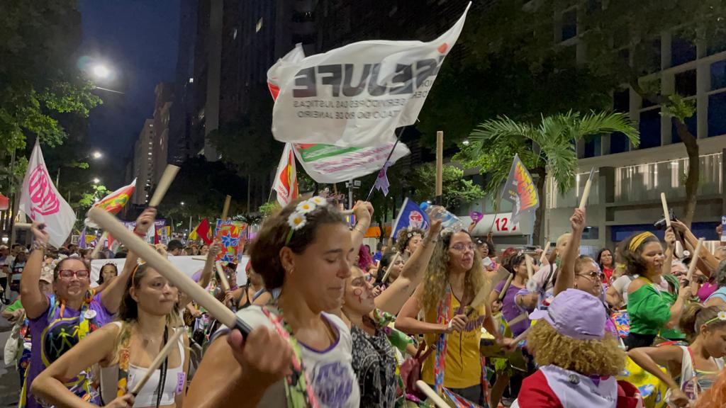 O ato também contou com representantes de outros sindicatos, movimentos sociais, estudantes e políticas. A deputada estadual Renata Souza destacou a importância da atuação das mulheres nos espaços de poder: “vamos reunir todas as nossas forças nas ruas, mas é também dentro da Alerj racista, machista, LGBTfóbica que a gente vai fazer política que consiga superar a lógica das desigualdades de gênero, raça e classe no nosso país e no nosso estado, que hoje tem um aumento de 45% de violência contra as mulheres. Sigamos na luta por todas nós”, afirmou a parlamentar, lembrando ainda que é preciso continuar cobrando justiça por Marielle.