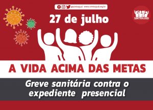 Para marcar o início da greve sanitária, na segunda-feira, 27 de julho, os servidores realizarão manifestações, garantindo as medidas de segurança, em frente ao TRF-3, às 9 horas, e ao prédio sede do TRE, às 11 horas. Os objetivos são: mostrar que a categoria não colocará suas vidas em risco neste retorno e pressionar para que as administrações realizem audiências com o Sindicato para debater o tema. A diretoria do Sintrajud solicitou reuniões emergenciais com as administrações.