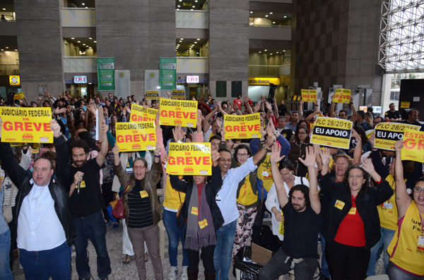 Esta semana é decisiva para a greve do Judiciário. Na semana passada, milhares de servidores foram à Brasília e pressionaram para o cancelamento da sessão do Congresso Nacional, que ocorreria na quarta-feira, 19, já que o PLC 28/2015 não estava pautado. Foi necessária muita luta, mas conseguiram, e a partir disso o veto 26 passou a trancar a pauta do Congresso Nacional e deve ser pautado para a próxima sessão conjunta.
