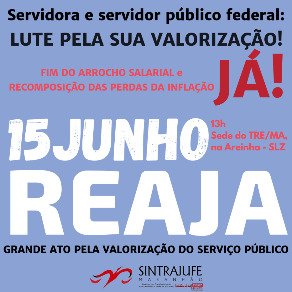 Em razão desse quadro, das disputas orçamentárias para a recomposição dos salários (por exemplo, a retomada das discussões para restabelecimento de quinquênios exclusivamente para magistrados e procuradores via PEC 63), dos prazos limitados, da necessidade de se construir uma mobilização ainda mais sólida e abrangente, os servidores decidiram que no dia 15 de junho, às 13h, deve ser realizado ato de todos os SPFs em frente à Sede do TRE Maranhão, intensificando a luta pelo fim do congelamento salarial.