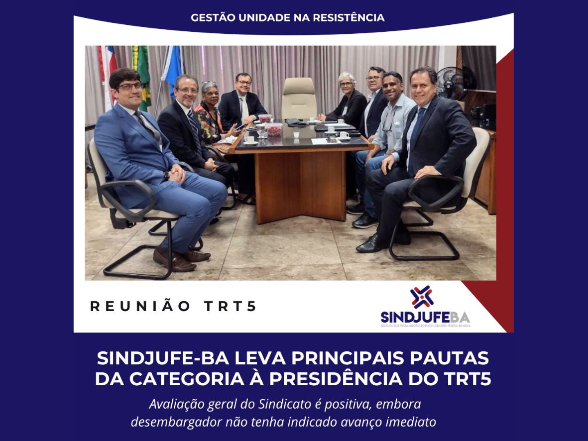 A primeira reunião do Sindjufe-BA com nova presidência do TRT5 tratou das principais pautas da categoria e de pendências existentes. A avaliação é de que a reunião foi positiva, embora não tenha havido avanço imediato na resolução de algumas pautas. O primeiro ponto a tratar foi a campanha #AntecipaSTF e o presidente do Regional do…