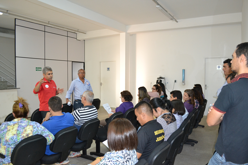 Pelo período da manhã até às 14h, os diretores João Batista, Gilvani Ferraz, Aurélio Oliveira e Lauro Humberto percorreram todo o Fórum Trabalhista do TRT-18 convocando os servidores para participar da assembleia setorial, que ocorre nesta terça-feira (02), às 13h, na entrada principal do prédio, com acesso pela Rua T-51 com a T-1.