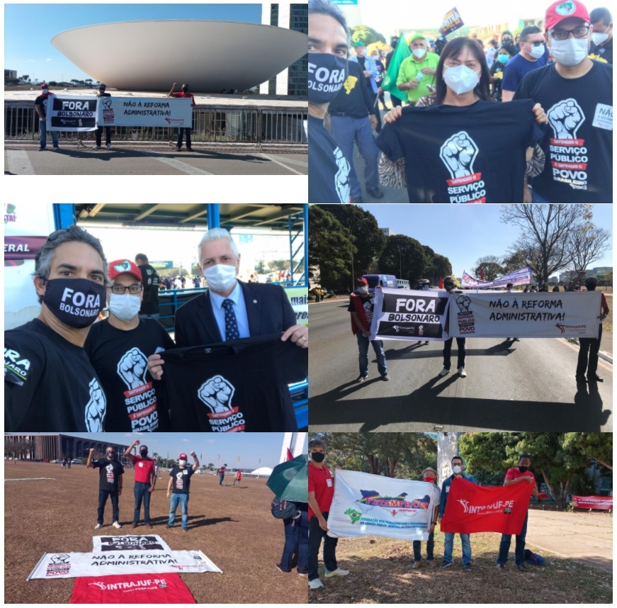 A representação do Sintrajuf-PE caminhou ao lado de integrantes de várias entidades sindicais e da sociedade civil, além de parlamentares da Frente Parlamentar Mista do Serviço Público, como Alice Portugal (PCdoB-BA) e Rogério Correia (PT-MG). Os deputados federais foram presenteados com camisas da campanha do Sintrajuf-PE contra a reforma administrativa.