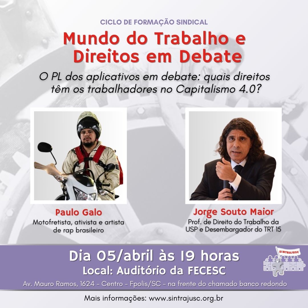 O “Ciclo de Formação Sindical do Sintrajusc: Mundo do Trabalho e Direitos em Debate” abordará diferentes temas referentes à realidade da classe trabalhadora num sistema que tanto exclui e oprime. Estão previstos encontros mensais em Florianópolis com debates reunindo nomes de lideranças dos movimentos sociais, sindicais, juristas e pensadores.