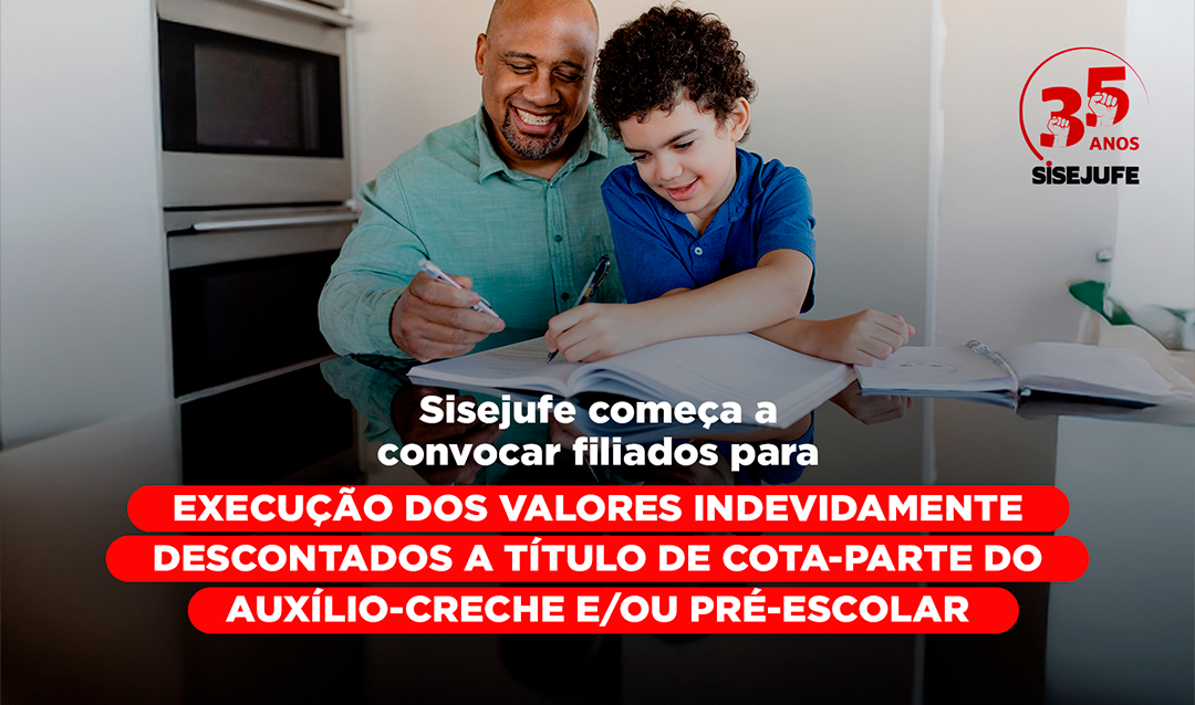 O Sisejufe está promovendo a execução para pagamento do crédito reconhecido na ação coletiva que afastou a cobrança da cota-parte dos servidores do auxílio pré-escolar e/ou auxílio-creche. A decisão judicial garantiu aos filiados o direito ao ressarcimento dos valores indevidamente descontados.