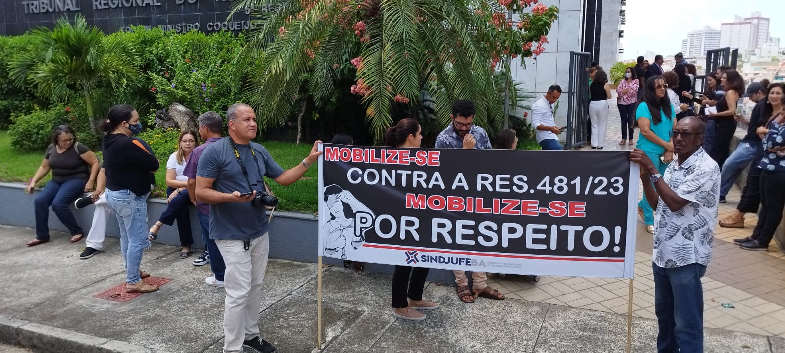 Além do ato realizado hoje no TRT de Nazaré, em Salvador, e em outros locais pelo estado da Bahia, o Sindicato também disponibilizou um link com abaixo-assinado que será entregue aos órgãos na Bahia.