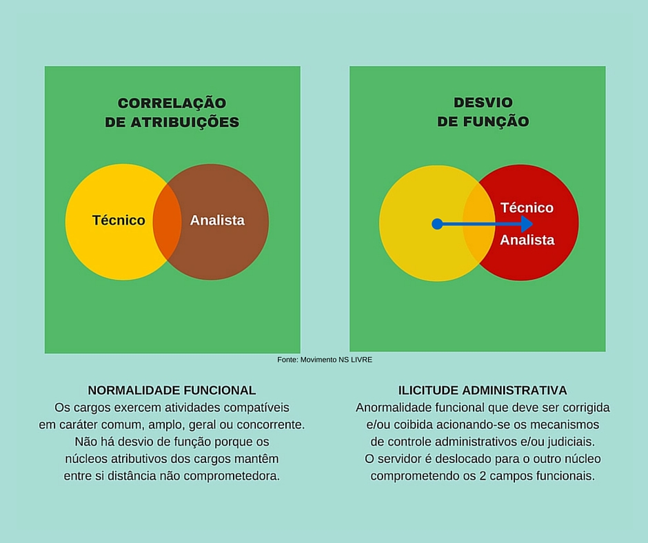 54. Esse fator é necessário para que a dinâmica organizacional gire em razão da coexistência dos cargos. Não se confunde com o desvio de função, que é uma ilicitude administrativa que deve ser corrigida pelos mecanismos hábeis. A figura abaixo ilustra essa relação: