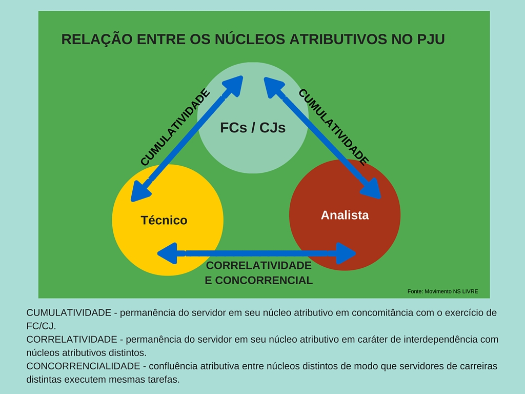 44. Cada cargo público, seja de técnico ou analista, bem como FC ou CJ, tem seu núcleo de atividades bem definido pela legislação e regulamentos específicos. Outro erro bastante comum é afirmar que Técnico-PJU no exercício de FC ou CJ está em desvio de função. Quem exerce tais encargos acumula novas e diferentes atribuições, assumindo maiores responsabilidades, executando atividades de complexidade diversa e, por isso, faz jus à compensação financeira.