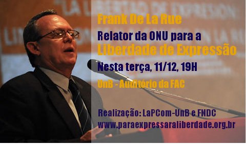 • Em atividade do FNDC, relator da ONU debate liberdade de expressão nesta terça-feira, em Brasília