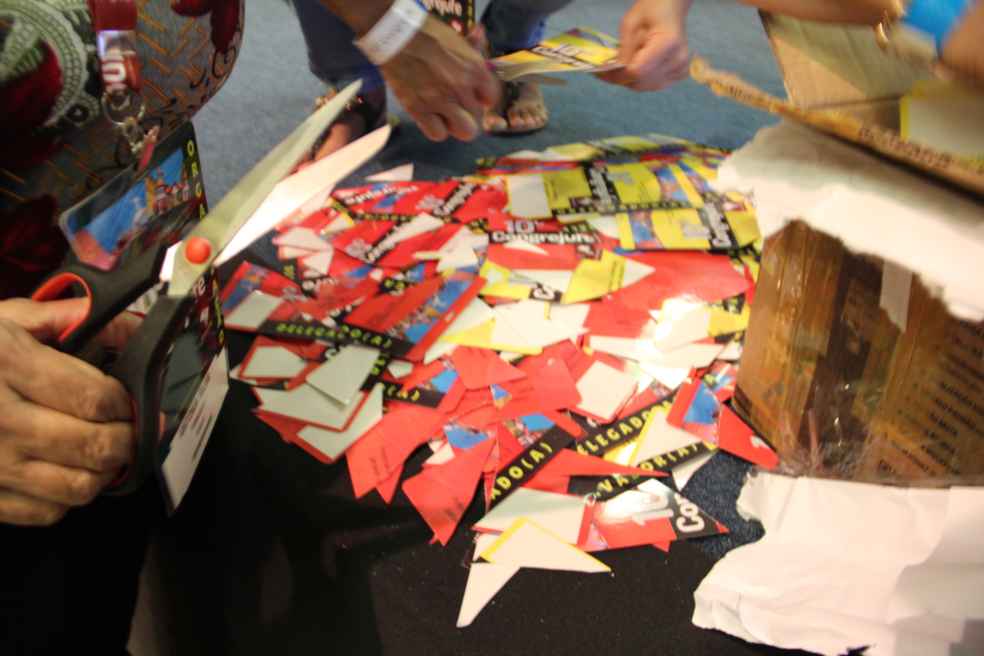 Assim como determinado no Regimento Interno do Congresso, os crachás não entregues durante o período do credenciamento foram inutilizados sob o acompanhamento dos participantes em plenário.