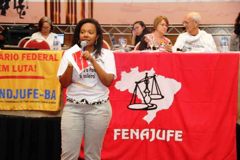A mesa de carreira inaugurou uma nova fase na Fenajufe na luta pela igualdade de gêneros. Pela primeira vez, o sorteio das falas foi feito de forma paritária: dez plenaristas sorteados, sendo cinco homens e cinco mulheres. Mara Weber, propositora do modelo, comemorou o feito histórico.