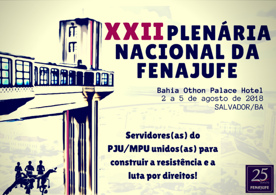 – Falta pouco para começar a XXII Plenária Nacional da Fenajufe. Fique atento(a) às orientações da organização