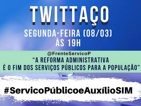 Utilize a hashtag #ServicoPúblicoeAuxílioSim no Twitter, hoje, a partir das 19h; curta, comente e retuite as mensagens. Participe!