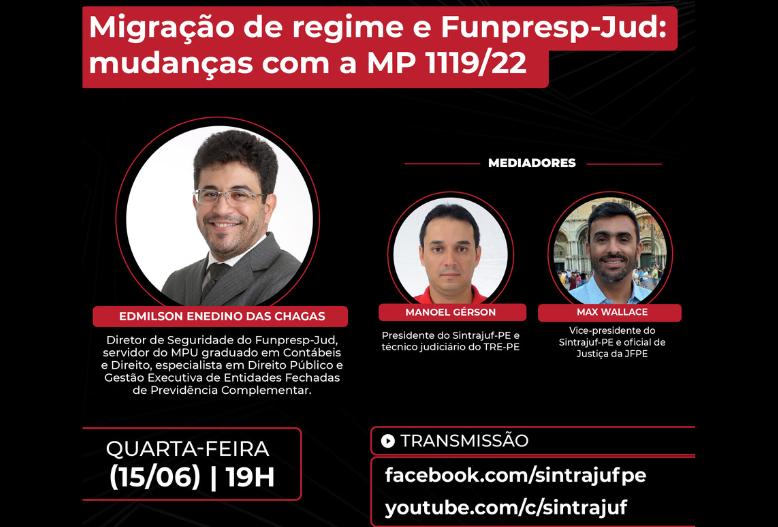 Sintrajuf-PE realiza live com tema: “Migração de regime e Funpresp-Jud: mudanças com a MP 1119/22