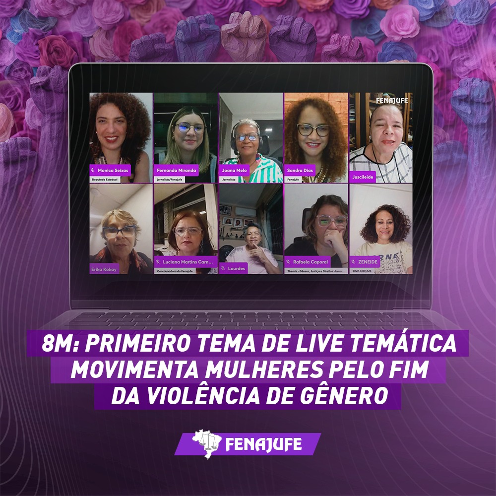 Participaram do debate, ainda, a coordenadora Juscileide Rondon representando o Sindjufe/MT, Zeneide Andrade do Sindjufe/MS e Lourdes Rosa do Sintrajufe/RS. Os sindicatos Sindiquize/SP, Sintrajusc/SC, Sintrajufe/PE, Sitraam/AM, Sisejufe/RJ e Sintrajufe/RS retransmitiram a live em suas redes sociais.