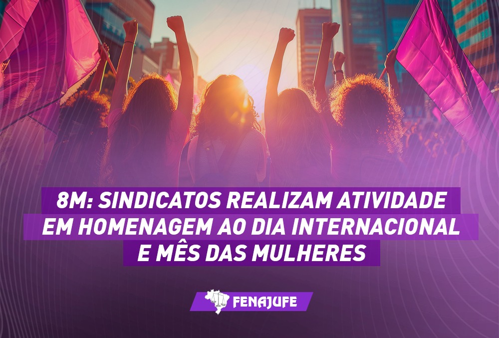 Para celebrar o Dia Internacional das Mulheres (8M) os sindicatos de base realizaram várias atividades nos estados. As ações ocorridas no dia 8, foram desde entrega de botons com diálogos para servidoras nos tribunais a atos públicos, caminhadas, debates virtuais entre outros.