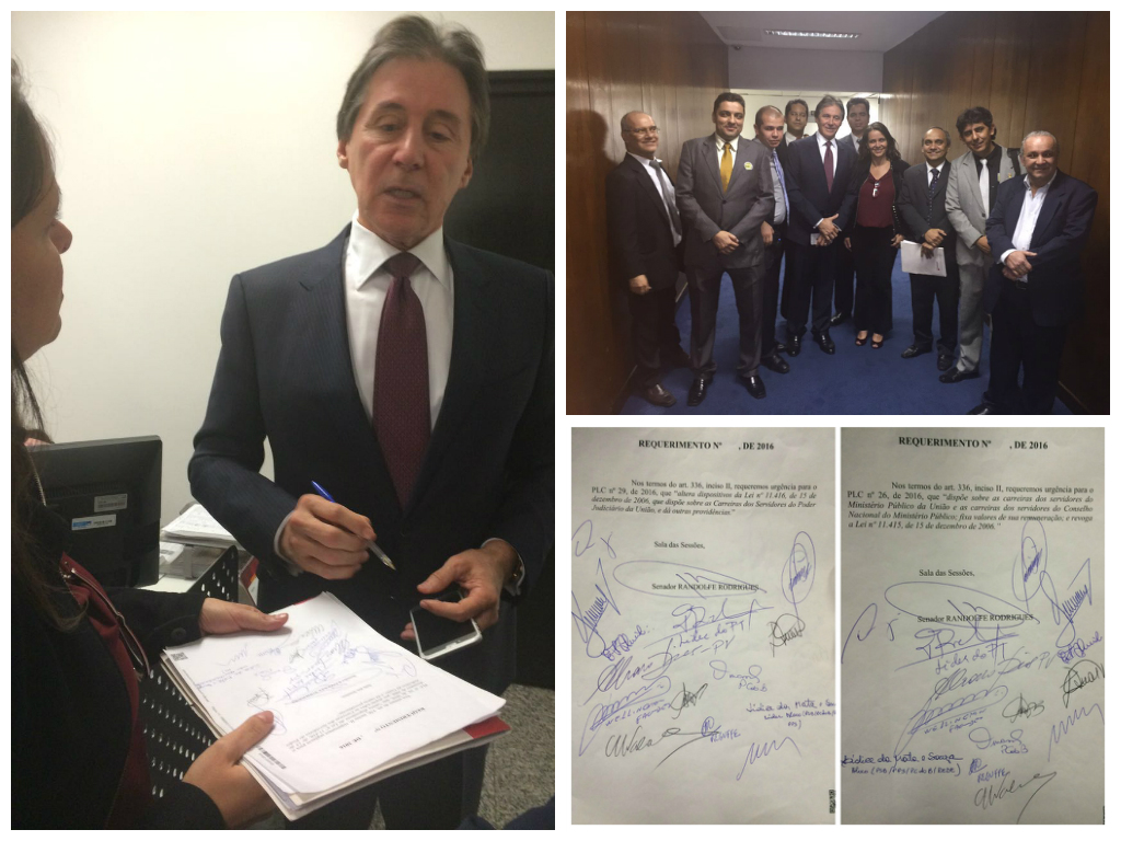 Outra consequência do trabalho conjunto no Senado foi o sucesso na coleta de assinaturas de apoio à urgência constitucional dos projetos. Por volta das 21h, após um dia inteiro de tentativas, dirigentes conseguiram a assinatura do senador Eunício Oliveira (PMDB/CE), líder da bancada peemedebista. Com isso, são 64 assinaturas no Requerimento de Urgência Constitucional – dez a mais que as 54 necessárias – e mais a promessa do senador Cássio Cunha Lima (PSDB/PB) de assiná-lo amanhã (29/6).