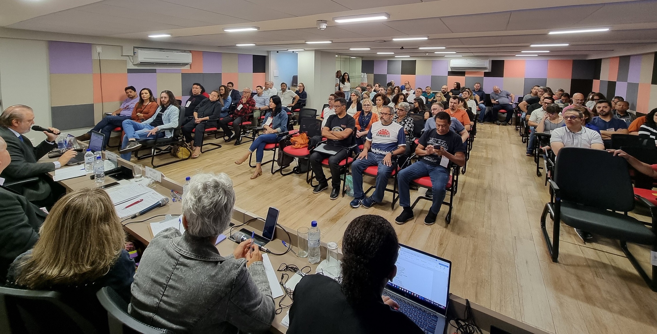 A mesa foi composta pelas coordenadoras Soraia Marca e Denise Carneiro e pelo coordenador Roberto Policarpo.