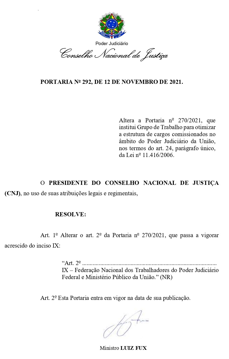 Atendendo solicitação da Fenajufe, o Conselho alterou a Portaria 270/21 para incluir representantes de servidores
