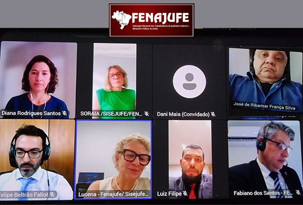 Um encontro na tarde desta terça-feira, 20, reuniu representantes da Fenajufe e da Subchefia de Análise Governamental da Presidência da República, para tratar da sanção do PL 3662/21, que trata do NS. Pela Fenajufe, participaram as Coordenadoras Lucena Pacheco e Soraia Marca e os Coordenadores Fabiano dos Santos e José Ribamar França. Pela Subchefia, presença de Felipe Beltrão Fallot – Subchefe Adjunto de Gestão Pública – e Diana Rodrigues Santos – Assessora do órgão.