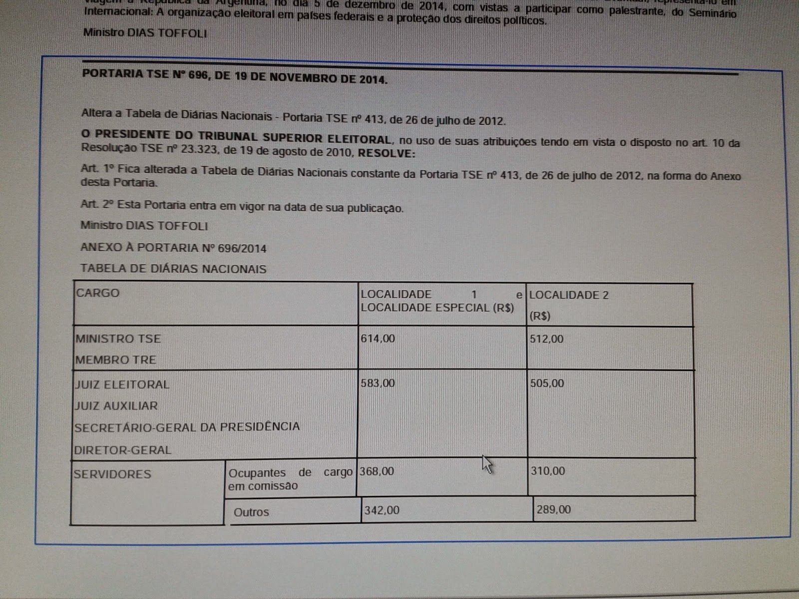 A diretora-geral informou que o escalonamento feito na Portaria nº 696/2014, de 19 de novembro de 2014, que reajustou as diárias, é feito pelo CNJ (Conselho Nacional de Justiça), verificar e incluir a resolução do CNJ que trata desse escalonamento. Veja abaixo a Portaria nº 696/2014.
