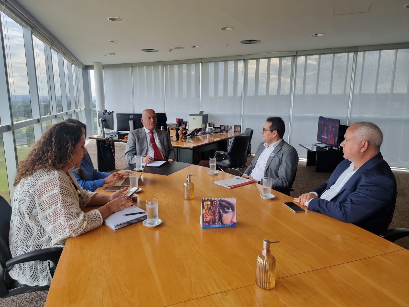 Participaram os coordenadores Manoel Gérson e Roberto Policarpo. Acompanharam, ainda, a assessora-chefe do diretor-geral, Julianna Fesconetto, e Thayanne Fonseca, secretária de Gestão de Pessoas do tribunal.