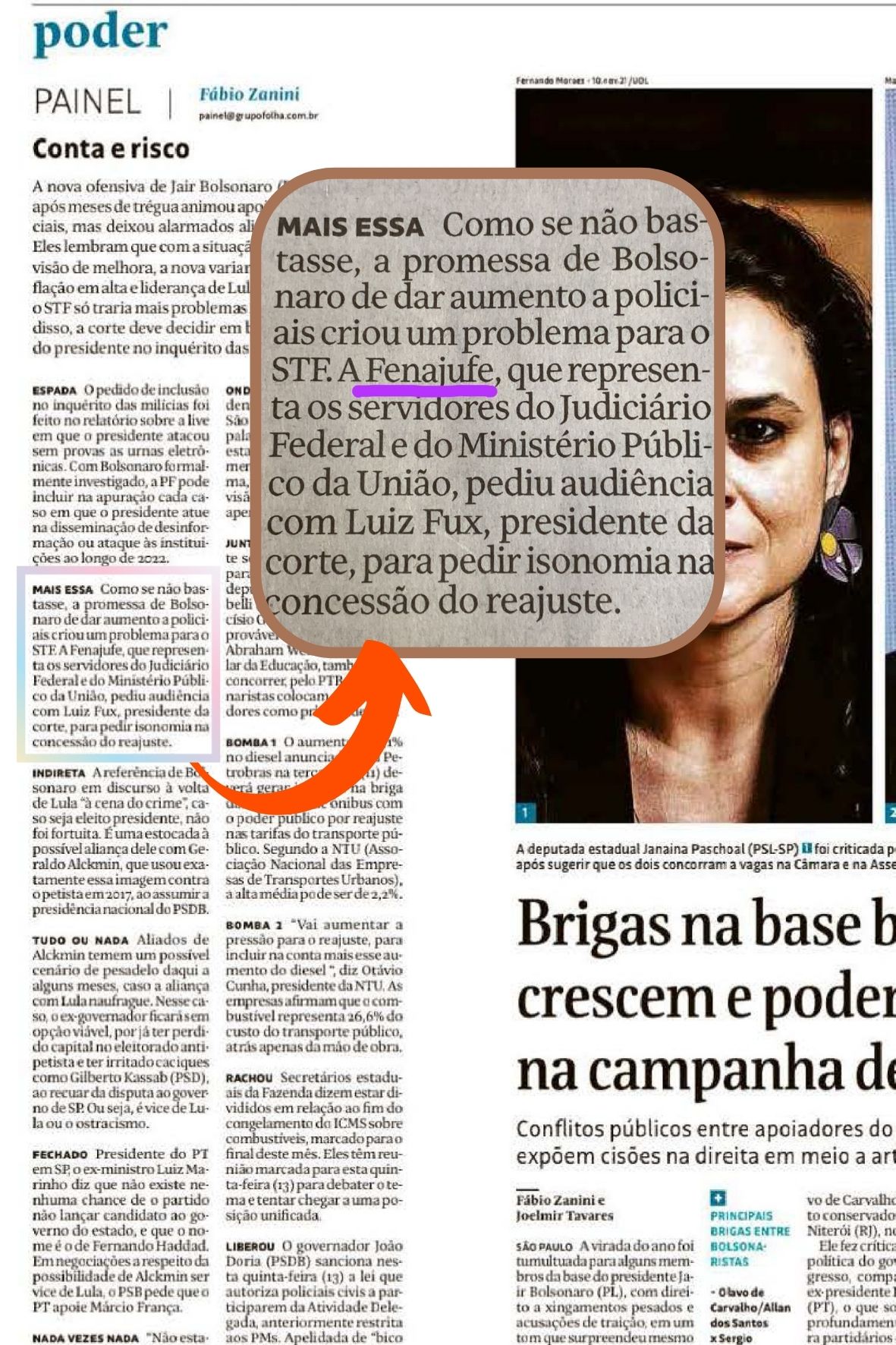 Também a edição impressa da Folha de São Paulo trouxe nota a respeito da pretensão da Fenajufe