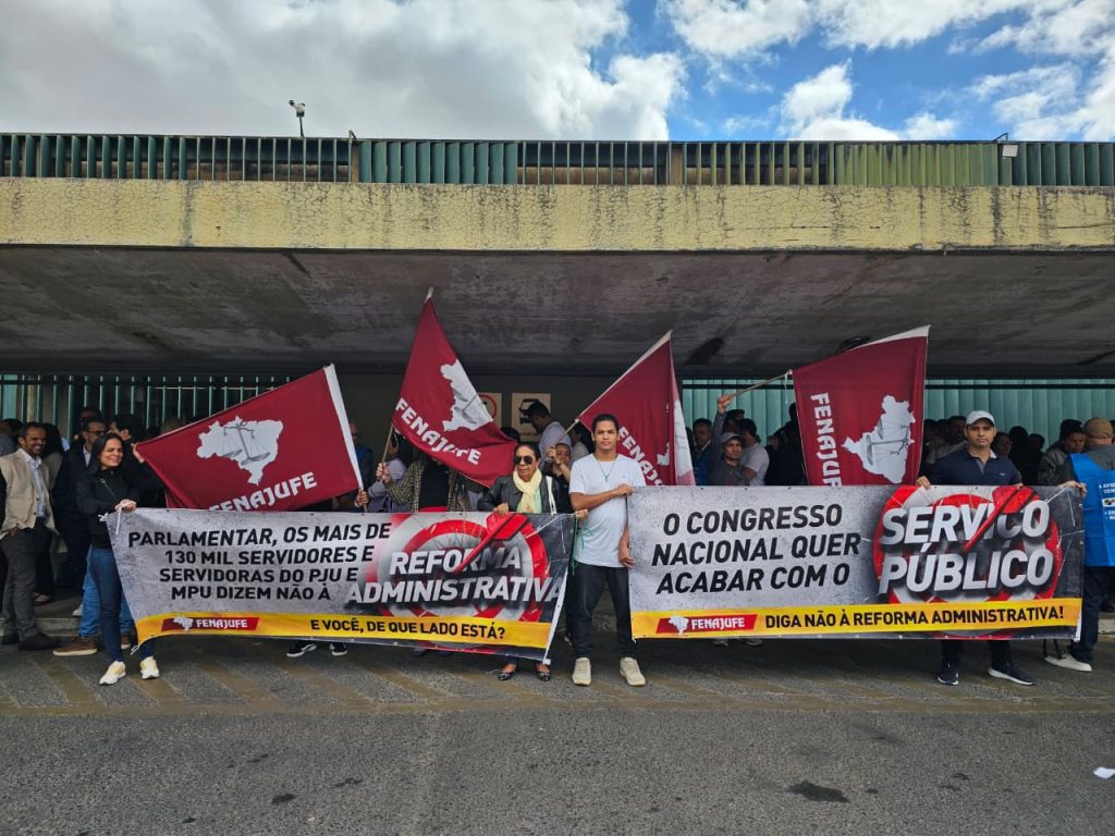 Na manhã da terça-feira (3), a Federação esteve no aeroporto de Brasília para pressionar os parlamentares que desembarcavam na capital. O ato contou com a participação de diversas entidades do serviço de público – Estaduais e Municipais.