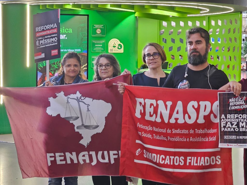 Fenajufe e entidades do serviço público realizam ato no aeroporto de Brasília e Câmara dos Deputados contra a reforma administrativa