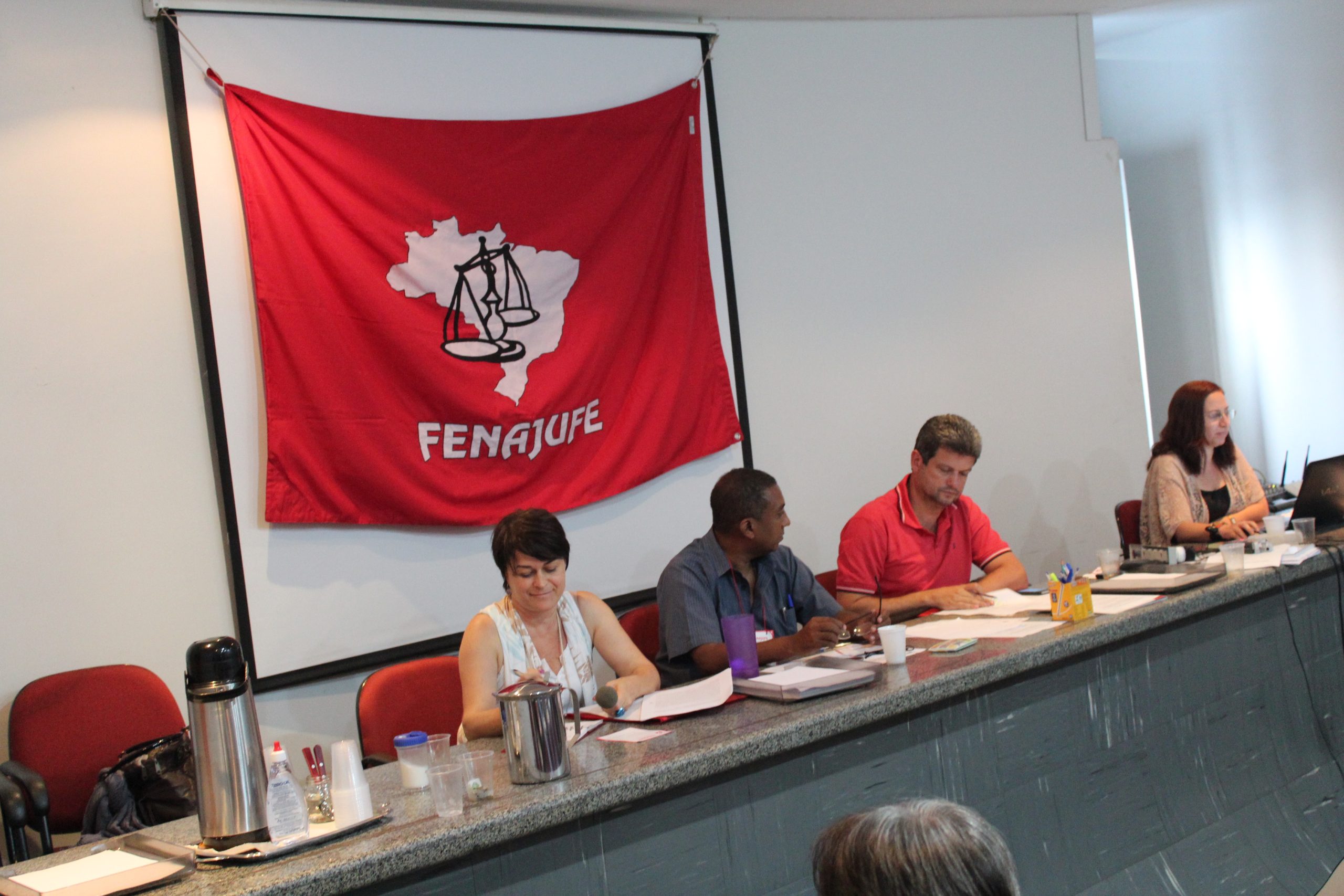 Na mesa diretora, os coordenadores da Fenajufe Cledo de Oliveira Viera, Mara Rejane Weber e Saulo Costa Arcangeli organizaram os trabalhos e submeteram a pauta à discussão. Debates acalorados e defesas de posição bem estruturadas deram a tônica do encontro.