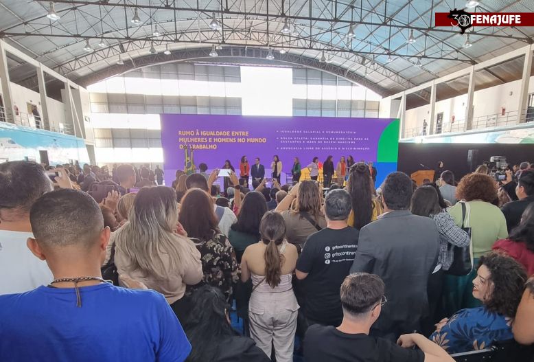 A Fenajufe participou na tarde desta segunda-feira (3) da cerimônia de sanção da Lei da Igualdade Salarial entre homens e mulheres (Lei nº 1.085/23), na Base Aérea, em Brasília. A sanção presidencial representa um grande avanço rumo à igualdade de gênero no mundo do trabalho.
