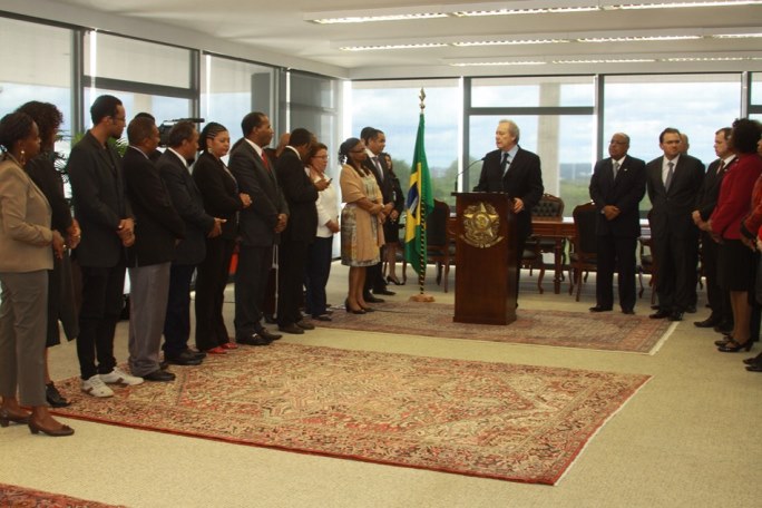 A assinatura da instrução normativa que regulamenta nas unidades do Judiciário a Lei 12.990/2014 aconteceu na quarta-feira, 18 de março e foi presidida pelo Ministro Ricardo Lewandowski. Participaram as ministras da Secretaria da Presidência para Igualdade Racial, Nilma Gomes e Dos Direitos Humanos, Ideli Salvati; o ministro do STJ Benedito Gonçalves e o Coordenador da Fenajufe, Cledo Oliveira Vieira. Entre os convidados, presenças como a do presidente do Conselho Federal dos Advogados do Brasil, Marcus Vinicius Furtado, da deputada federal Benedita da Silva e outros parlamentares, bem como de representantes de diversos movimentos sociais, mostraram a importância histórica do ato.