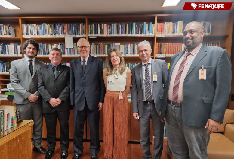 Pela Federação participaram a coordenadora plantonista Soraia Marca, o coordenador Leopoldo de Lima, o assessor institucional Alexandre Marques e o advogado João Marcelo da Assessoria Jurídica Nacional (AJN – Cezar Britto Advogados Associados), além do representante do Sijufego/GO, Alberto Brambila.