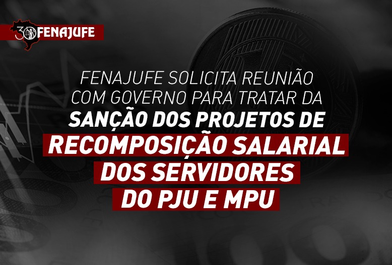 A Fenajufe solicitou, nessa quarta-feira (4), audiência com o governo para tratar das pautas de interesse da categoria, entre elas a sanção dos projetos de recomposição salarial das servidoras e servidores do PJU e MPU — PLs 2441 e 2442/22. A Fenajufe encaminhou ofício à ministra da Gestão e da Inovação em Serviços Públicos, Esther Dweck; ao ministro da Casa Civil, Rui Costa; ao ministro da Fazenda, Fernando Haddad; e ao ministro Márcio Macedo, da secretaria-geral da Presidência da República.