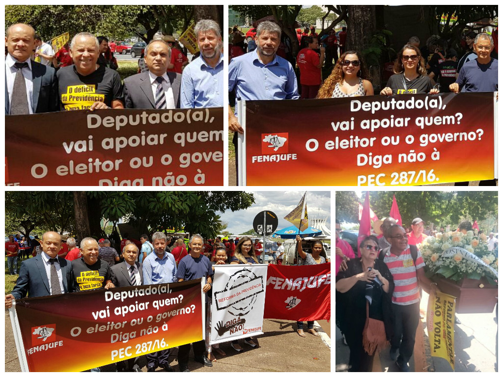 Servidores mobilizados no Dia Nacional de Luta Contra a Reforma da Previdência, Trabalhista e em Defesa dos Serviços Públicos, acontecido neste 28 de março, cobraram dos deputados federais em todo o País, respeito aos trabalhadores brasileiros e aos serviços públicos. A mobilização é mais um passo na construção da Greve Geral, com paralisação nacional marcada para 28 de abril.