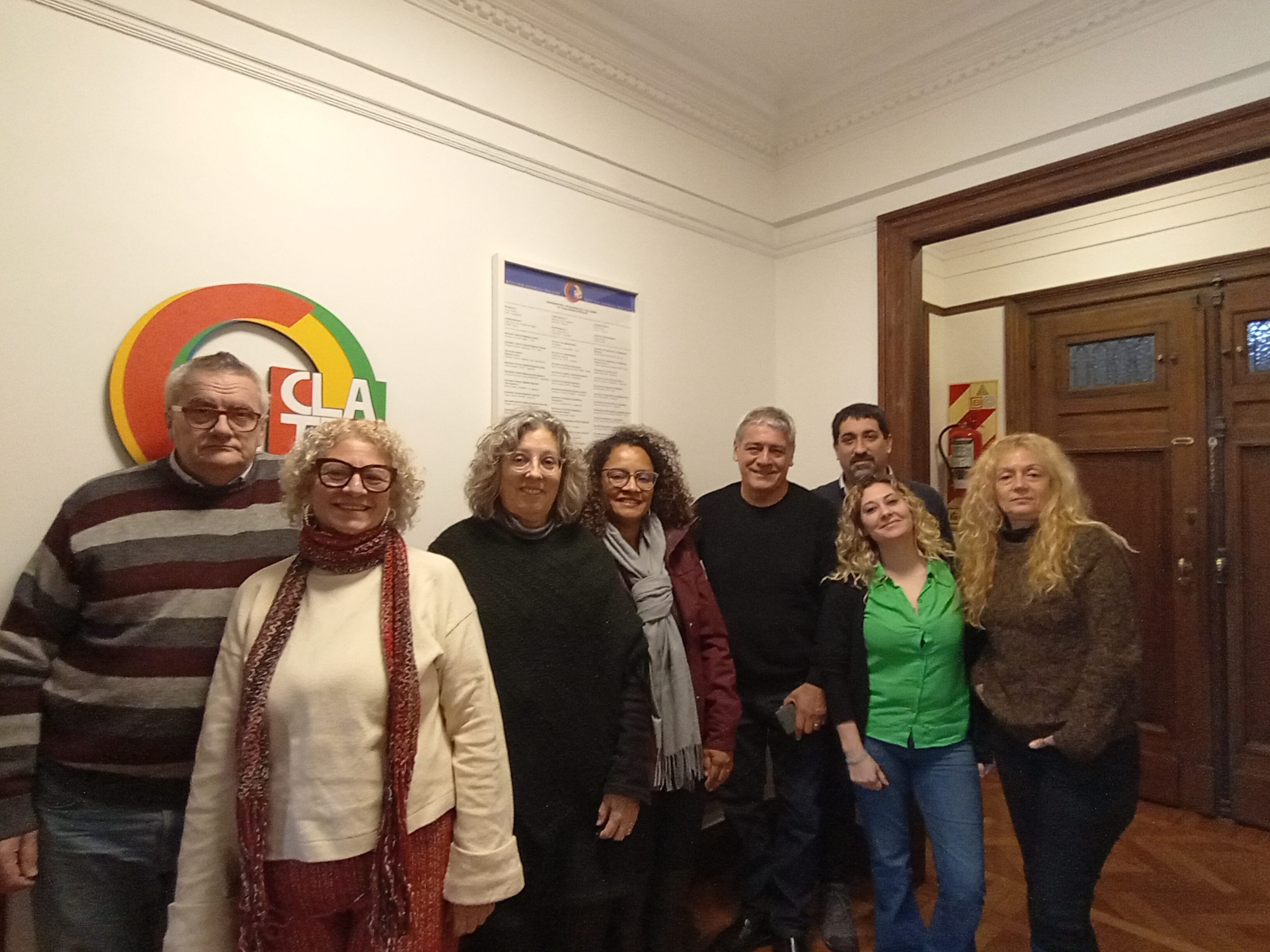 No dia 23/06, em Buenos Aires, as diretoras participaram, juntamente com colegas da Associação de Funcionários Judiciais do Uruguai (AFJU), de reunião da Coordenadoria Judiciária do Cone Sul, organizada pelo secretário-geral da FJA, Matías Fachal, para tratar da unidade da coordenadoria no enfrentamento às políticas neoliberais que primam pela retirada de direitos dos trabalhadores e do uso do Estado em prol do Capital.