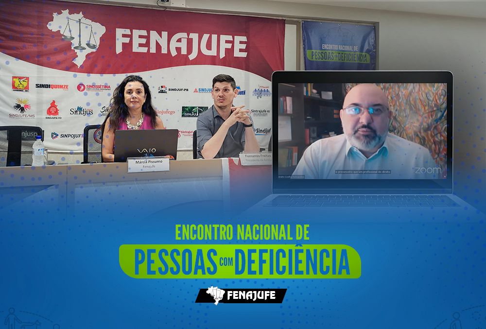 Na retomada dos trabalhos no Encontro Nacional da Fenajufe de Pessoas com Deficiência do PJU e MPU, na tarde deste sábado (21), dia nacional de luta do segmento, os participantes debateram a aposentadoria especial para servidoras e servidores com deficiência; a palestra ficou a cargo do advogado André Coelho, membro da Comissão de Direito das Pessoas com Deficiência das Seccionais OAB/SP, OAB/RJ, OAB/RS e OAB/PA.