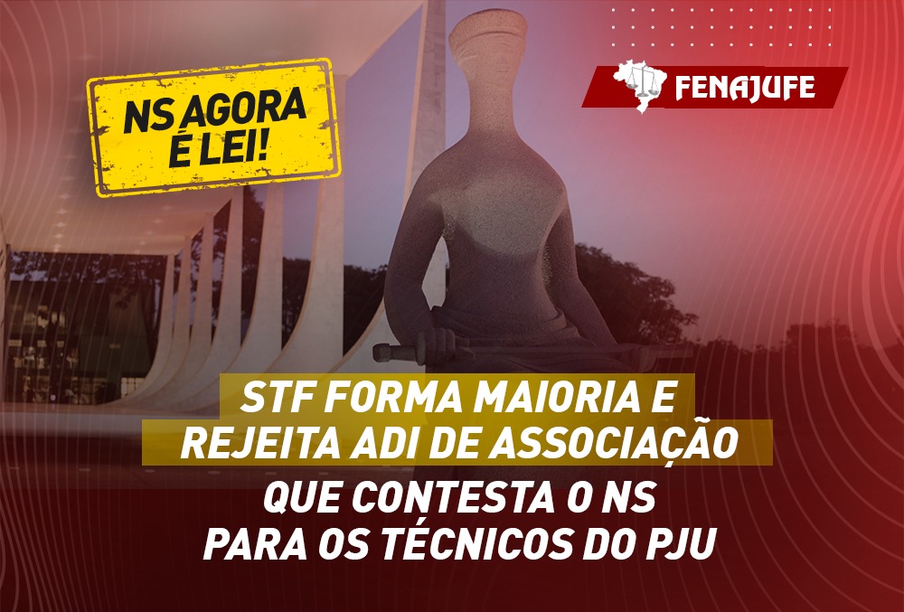 O nível superior (NS) para os técnicos do PJU, pleito fundamental conquistado pela Fenajufe para a categoria, alcançou mais uma vitória: o Supremo Tribunal Federal (STF) já formou maioria para rejeitar a Ação Direta de Inconstitucionalidade (ADI) nº 7.338/DF; a ação foi ajuizada por uma associação nacional contestando o NS na Lei nº 14.456/22. O julgamento ocorre no plenário virtual da Corte desde o dia 23/02 e termina nesta sexta-feira (1).