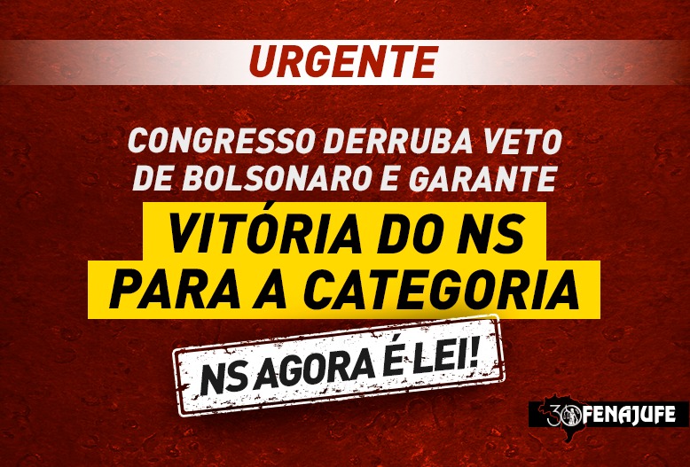 Agora com a derrubada do veto 51/22, o NS se torna realidade: uma grande vitória da Fenajufe e Sindicatos de base para a categoria.