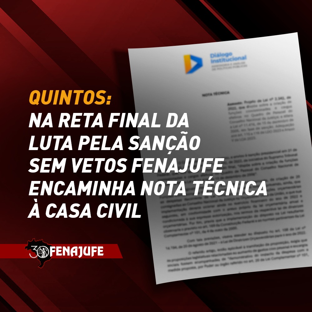 Com o prazo regimental para sanção se esgotando nesta quinta-feira (21) a Fenajufe tem realizado várias conversas, reuniões e articulações políticas visando contemplar o pleito da categoria com a aprovação sem vetos ao PL.