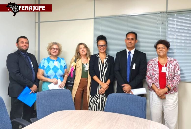 Participaram da reunião as coordenadoras da Federação Lucena Pacheco e Soraia Marca, além dos representantes do Sisejufe/RJ, Eunice Barbosa e Valter Nogueira.