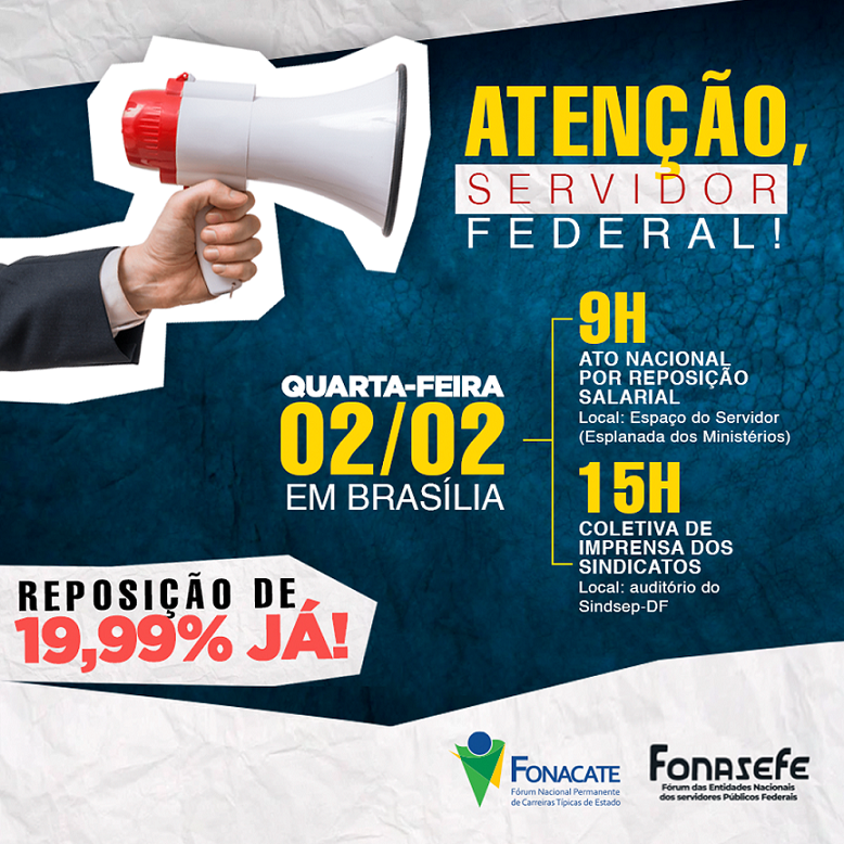 No dia 18 de janeiro foi protocolado no Ministério da Economia ofício com três reivindicações: 1) Recomposição salarial imediata de 19,99%; 2) Arquivamento da PEC 32/2020; 3) Revogação da Emenda Constitucional 95. Até o momento, o ministro Paulo Guedes não se manifestou.