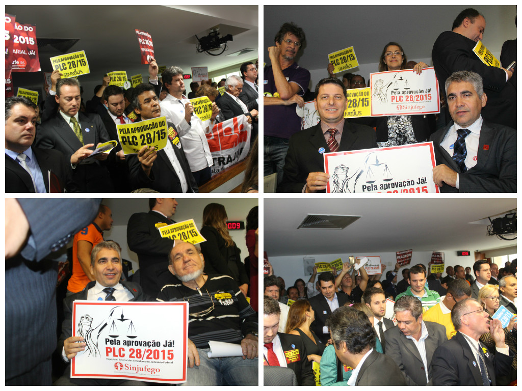 Pressionando governo, STF e Congresso, os servidores se mobilizaram e avançaram na luta pelo 28/2015. Na reunião ampliada da Fenajufe, acontecida no último fim de semana (16 e 17 de maio), o plenário definiu evitar que o projeto fosse encaminhado à Comissão de Assuntos Econômicos (CAE) do Senado, como havia sido proposto pelo senador Delcídio Amaral (PT/MS), líder do governo na Casa. Um calendário de mobilização também foi aprovado e a categoria decidiu pela greve, a partir do dia 10 de junho. Durante todo o dia nesta quarta-feira, 20, os sindicatos organizaram manifestações em suas bases pela aprovação do PLC e também na CCJ do Senado.